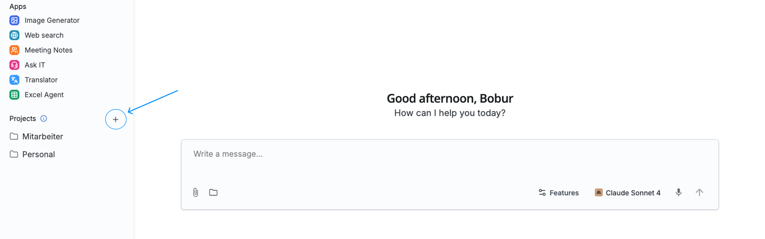 Klicke auf das Plus (+)-Symbol in dem Sidebar. Gib deinem Projekt einen eindeutigen Namen und wähle ein wiedererkennbares Icon, damit es leicht zu finden ist.